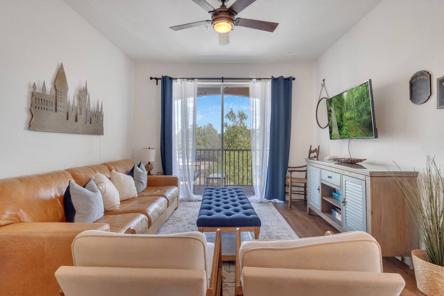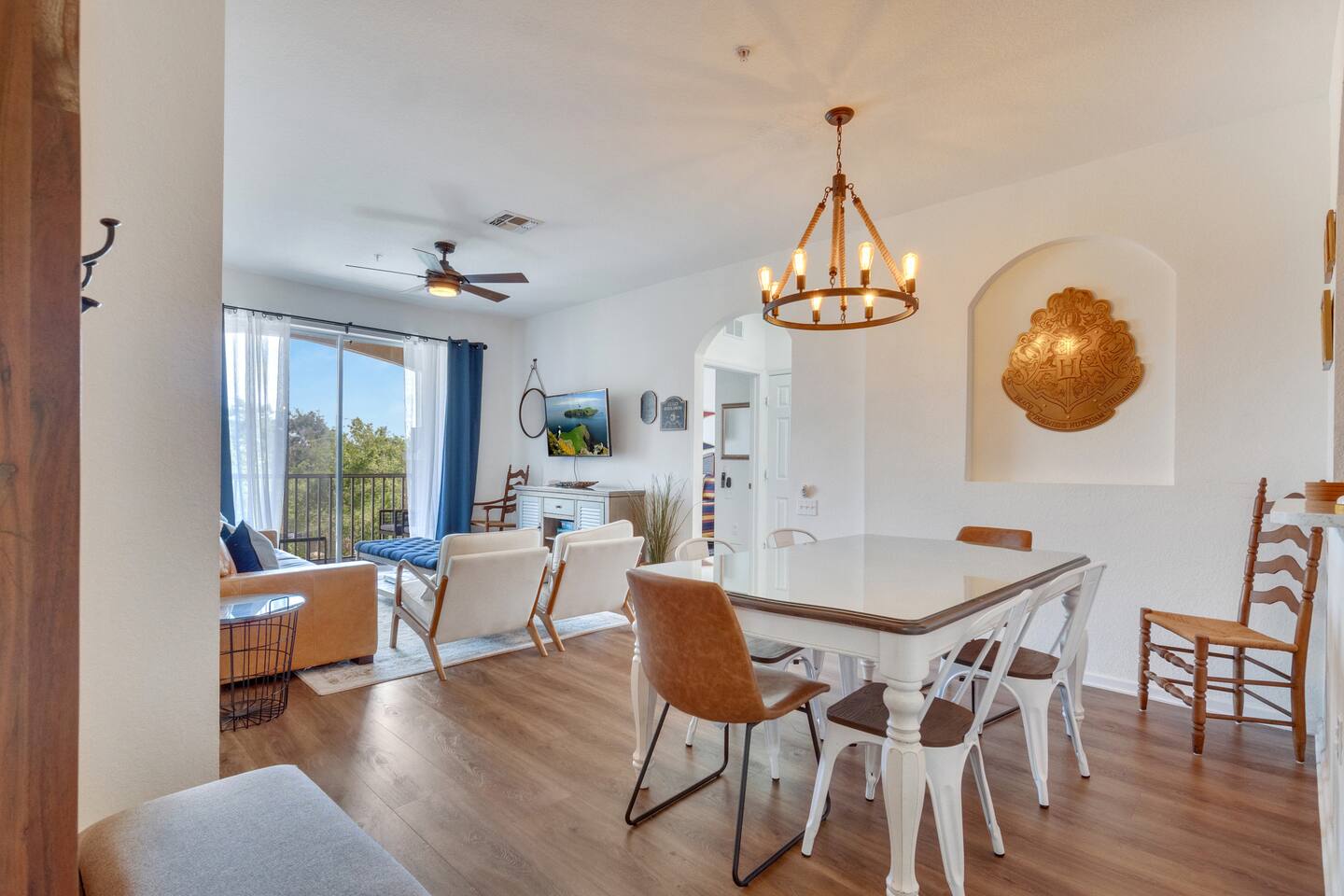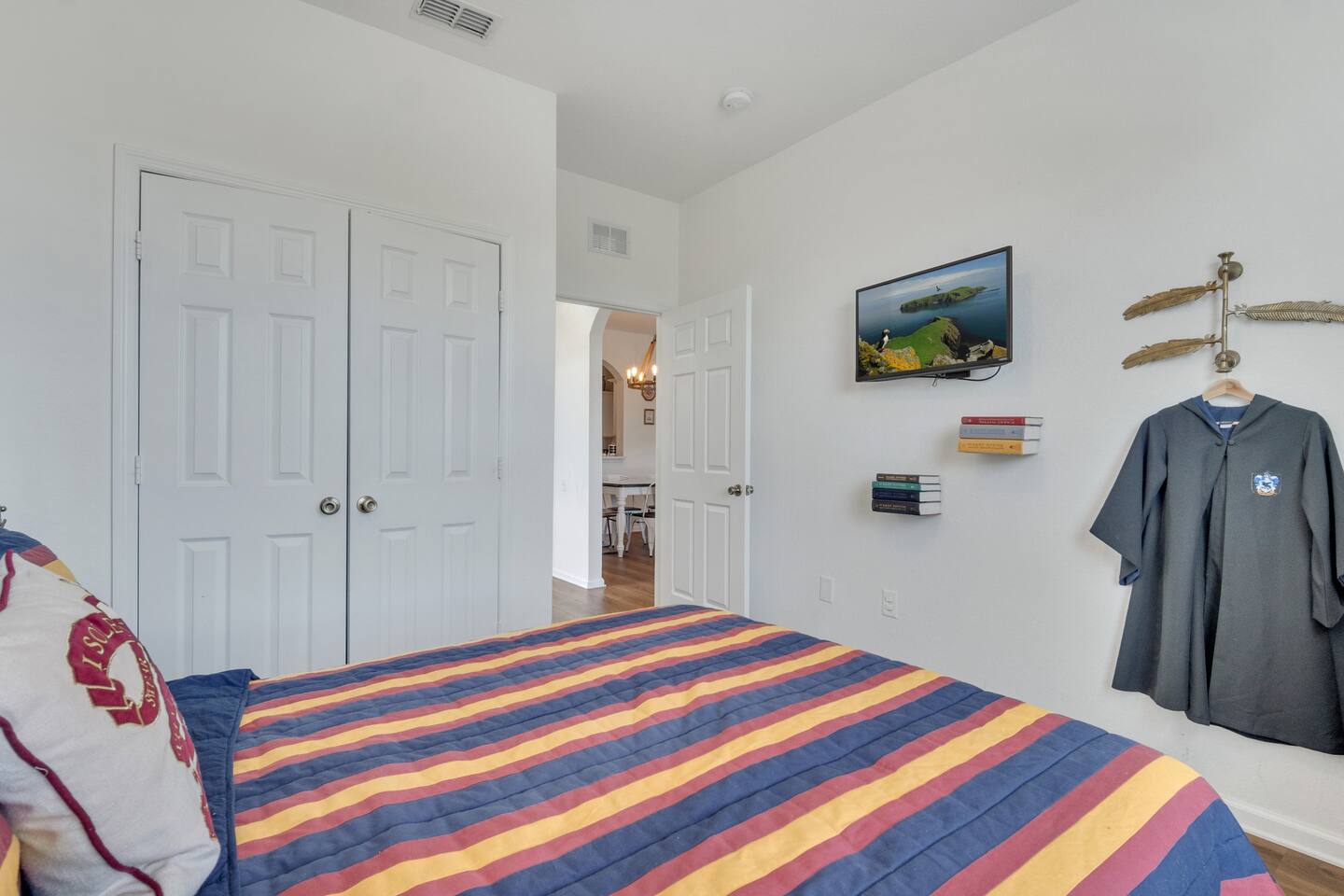 Welcome to a magical stay designed for families, fans, and anyone who wants their vacation to feel unforgettable. This immersive Harry Potter condo blends wizarding décor with modern comfort, creating a space that delights kids while still feeling relaxing for adults. The open living area features comfortable seating, a smart TV, and fast Wi-Fi — perfect for relaxing after a full day at the parks. The fully equipped kitchen includes stainless-steel appliances, cookware, and everything needed for family meals. 🧙 Sleeping Arrangements 3 themed bedrooms inspired by the wizarding world 2 full bathrooms with hotel-style cleanliness Sleeps families and groups comfortably Why Guests Love This Condo ✨ Closest building to Windsor Hills pool & clubhouse (gym, movie theater and arcade at the clubhouse) ✨ Themed décor that kids go crazy for ✨ Gated resort with 24/7 security ✨ Quick, easy drive to Disney parks (about 5 minutes) ✨ Washer & dryer in unit ✨ Free parking + keyless self check-in