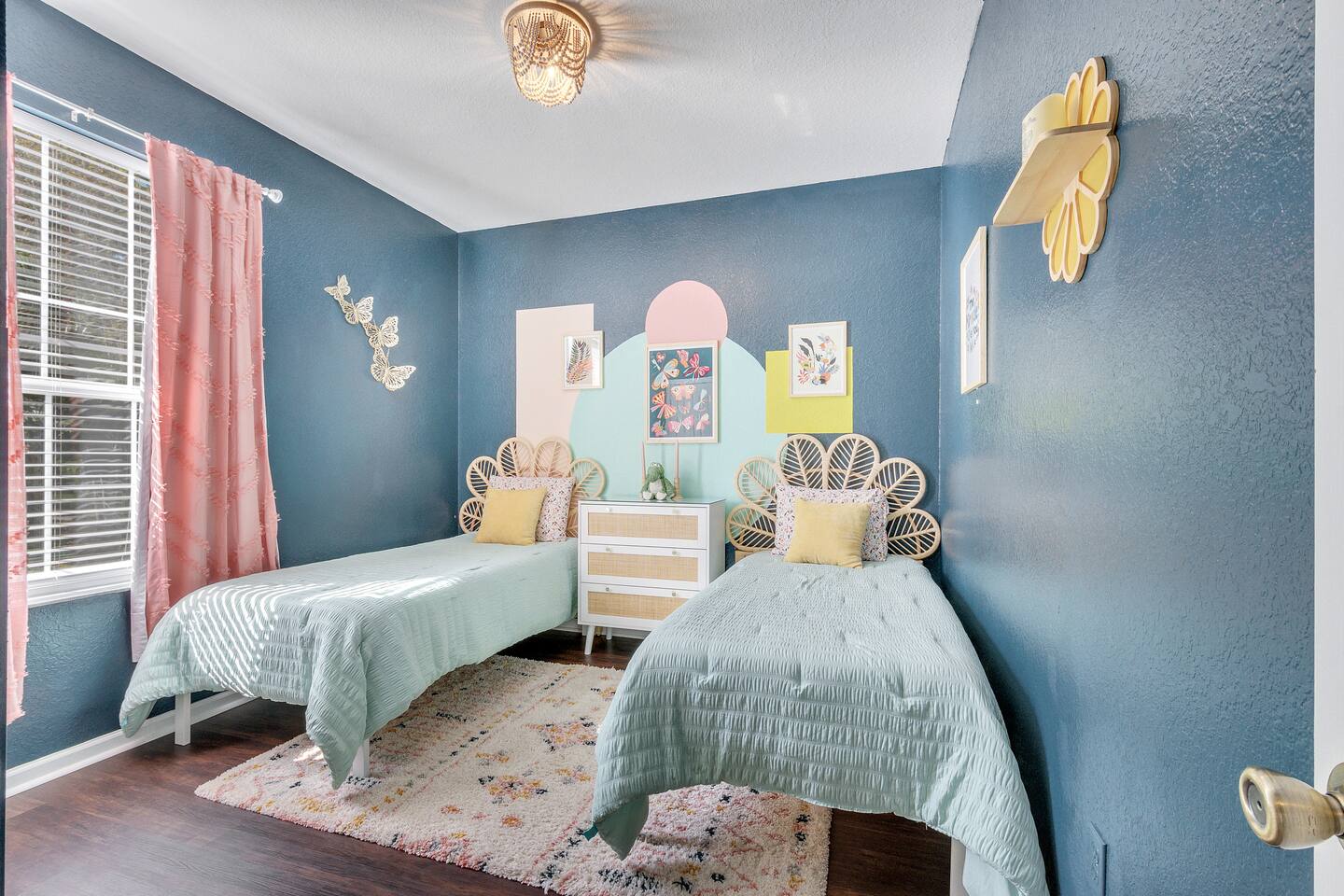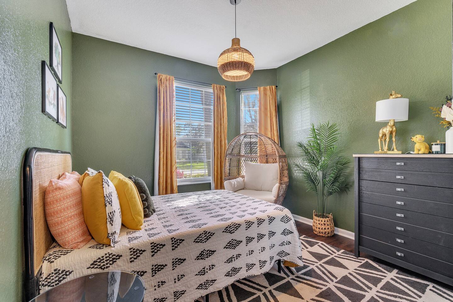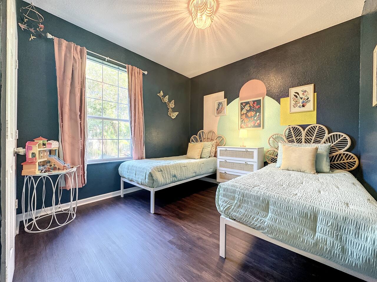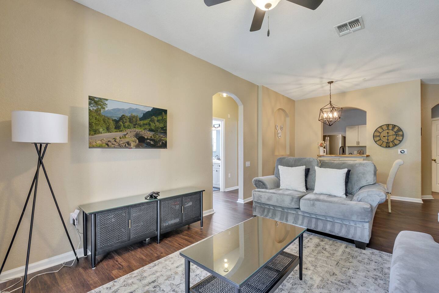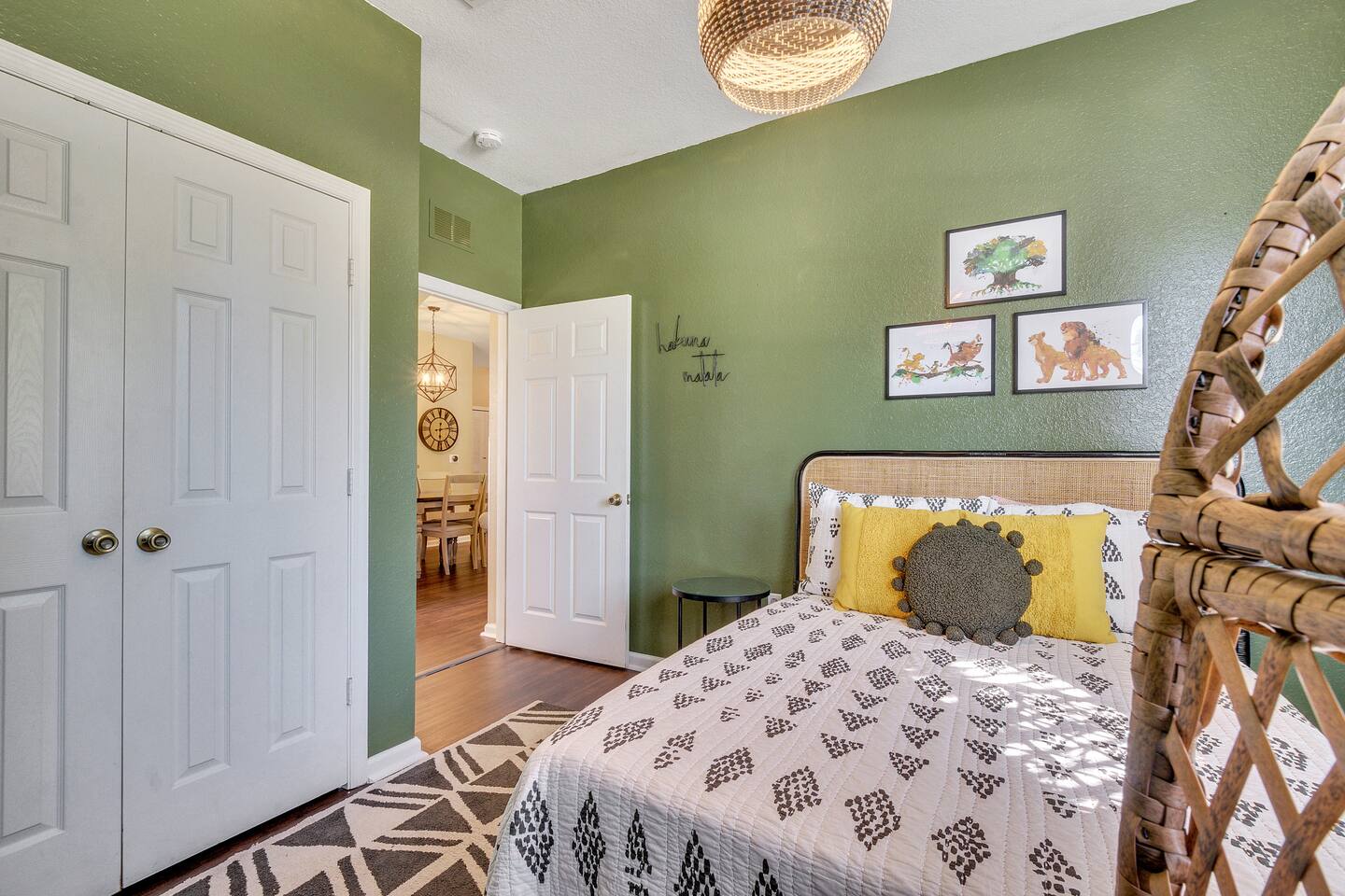 Welcome to our Disney-themed Windsor Hills 3BR/2BA—ground-floor and close to the pool & clubhouse. Themed bedrooms (Lion King, Encanto, Alice), a cozy living room, full kitchen, washer/dryer, fast Wi-Fi, and free parking. Resort perks: lagoon pool, waterpark, arcade, gym, movie theater, playgrounds, tennis & basketball—minutes to Disney. Pay ZERO resort fees when you stay with us — all of the amazing amenities are included at no extra charge. Plus, we’re on the ground level close to the resort’s pool and waterpark, giving you unmatched convenience. 🌴 Highlights: • 2.5 miles from Disney World gates • Themed bedrooms: Lion King, Encanto & Alice in Wonderland • Peter Pan-inspired living room with plush seating & smart TV • Fully equipped kitchen + washer/dryer • Free parking & no hidden resort fees • Hot tub and water park with slides and splash pad • In-house 40 seat movie theater and fitness center • Steps from the resort’s pool, water park, and clubhouse. NOTE: The water park portion (slide and splash pad) has pre-planned improvements to be made January 5, 2026 - February 13, 2026 where the water park will be closed during this time. The heated pool is open!